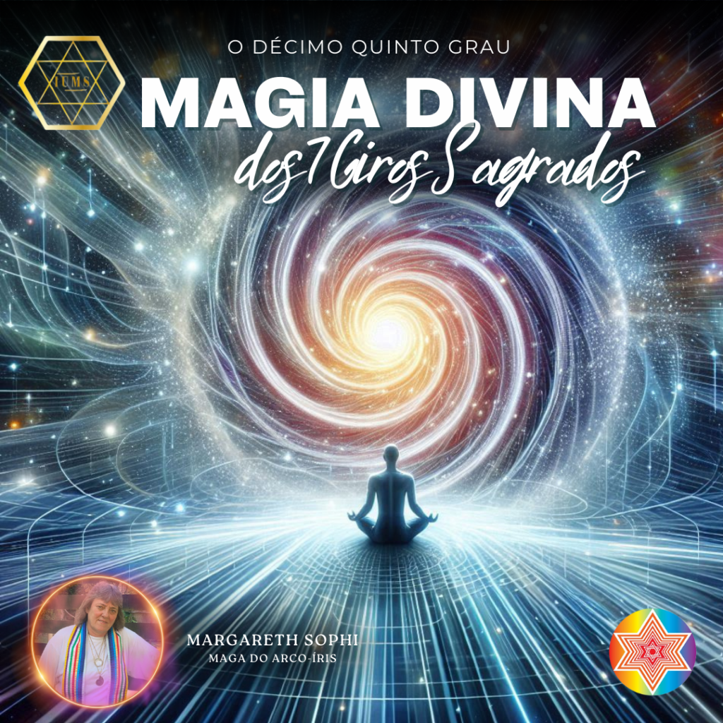 A Magia Divina dos Sete Giros Sagrados refere-se aos movimentos realizadores das virtudes divinas: Fé, Amor, Conhecimento, Justiça, Lei, Evolução e Geração. Esses giros ativam poderes angelicais, espirituais e elementais, além de moverem as forças criadoras e formadoras da natureza.